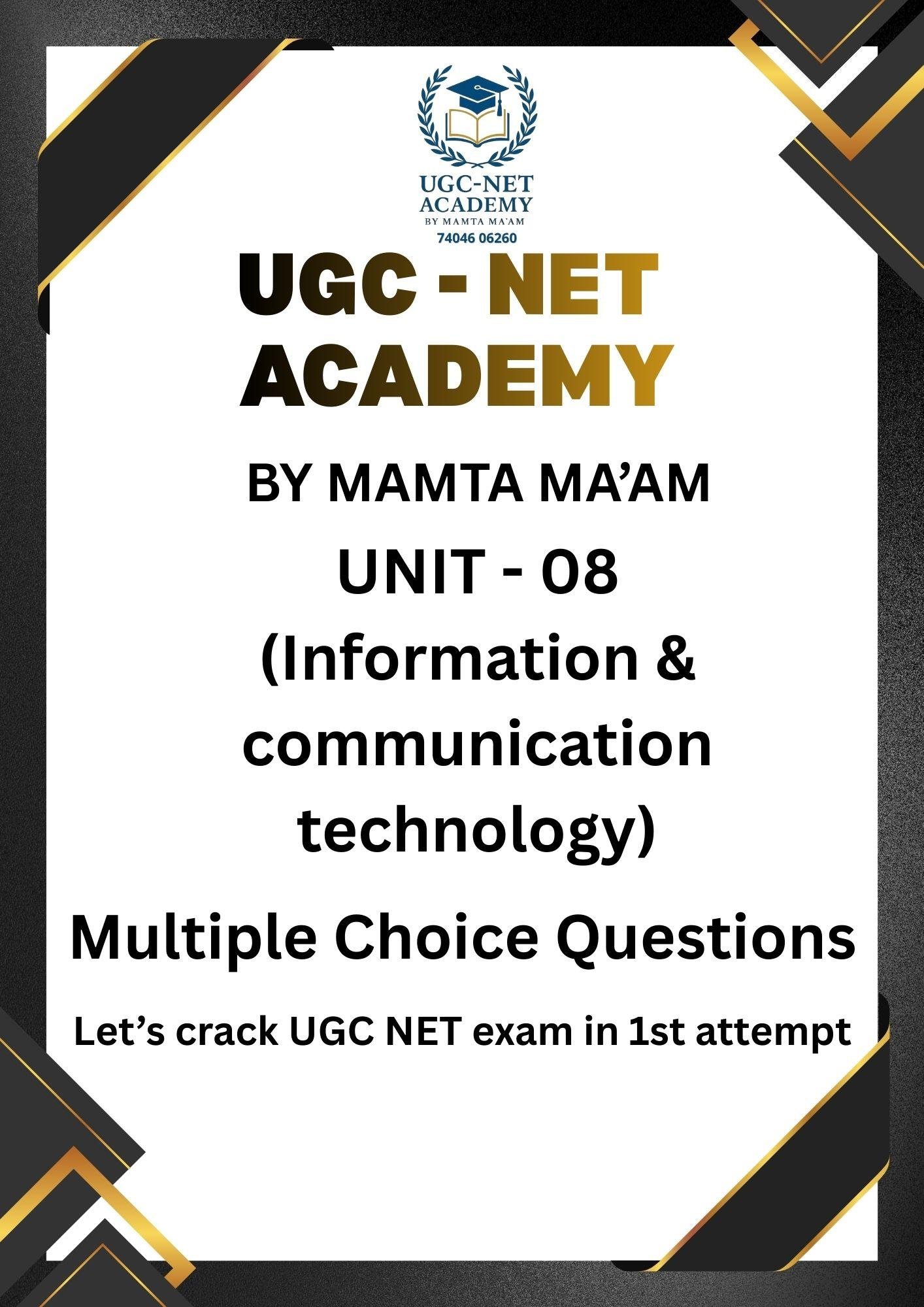 This MCQ set focuses on Unit 08 (ICT) of UGC NET Paper 1 and includes exam-relevant questions based on frequently asked topics. The questions follow the UGC NET pattern, including statement-based, matching, and concept-driven items. These MCQs are useful for quick revision, mock practice, and strengthening ICT fundamentals. Aspirants preparing with UGC NET ACADEMY resources can confidently use this material to enhance performance and easily Download UGC Exam Notes for structured preparation.
