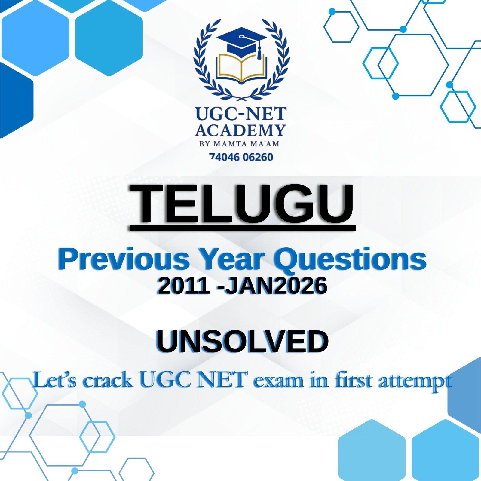UGC NET Telugu Previous Year Questions (PYQs) are a valuable resource for aspirants preparing for the UGC NET EXAM in Telugu subject. These PYQs help candidates understand the exam pattern, important topics, and frequently asked questions from Telugu language, literature, and cultural studies. Curated by UGC NET ACADEMY, this collection supports structured preparation and effective revision. Regular practice of PYQs improves conceptual clarity, accuracy, and time management, helping aspirants gain confidence and score better in the UGC NET Telugu paper.